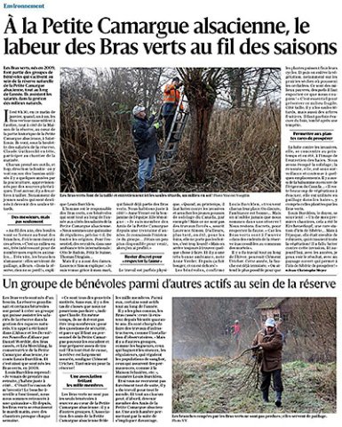 Fil d'Ariane :Accueil › Actualités › À la Petite Camargue alsacienne, le labeur des Bras verts au fil des saisons À la Petite Camargue alsacienne, le labeur des Bras verts au fil des saisons Publié le 22/01/2026 Actualités Article paru dans le journal L’Alsace le 22 janvier 2026