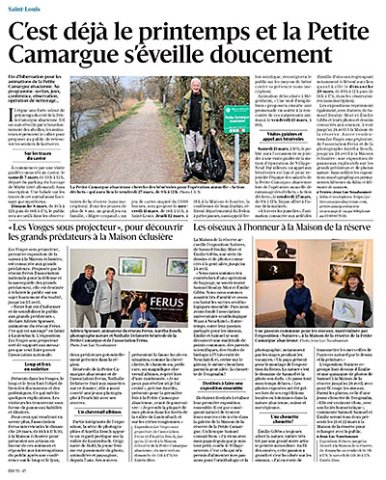 Fil d'Ariane :Accueil › Actualités › C’est déjà le printemps et la Petite Camargue s’éveille doucement C'est déjà le printemps et la Petite Camargue s'éveille doucement Publié le 08/03/2026 Actualités Article paru dans le journal l’Alsace le 8 mars 2026