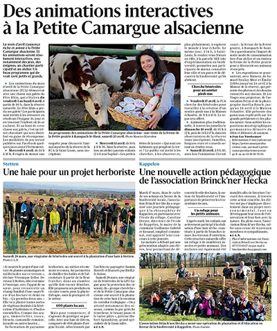 Fil d'Ariane :Accueil › Actualités › Des animations interactives à la Petite Camargue alsacienne Des animations interactives à la Petite Camargue alsacienne Publié le 31/03/2026 Actualités Article paru dans le journal L’Alsace le 31 mars 2026