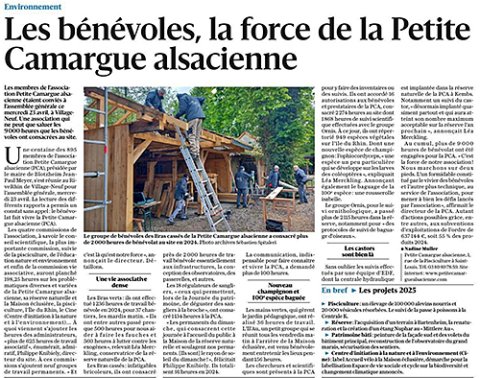 Fil d'Ariane :Accueil › Actualités › Les bénévoles, la force de la Petite Camargue alsacienne Les bénévoles, la force de la Petite Camargue alsacienne Publié le 25/04/2025 Actualités Article paru dans le journal l’Alsace le 25 avril 2025 Les bénévoles, la force de la Petite Camargue alsacienne 1 Les bénévoles, la force de la Petite Camargue alsacienne 2