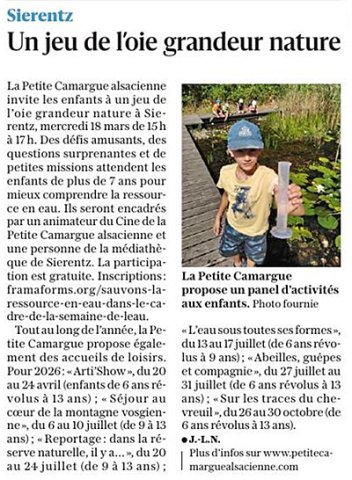 Fil d'Ariane :Accueil › Actualités › Un jeu de l’oie grandeur nature Un jeu de l'oie grandeur nature Publié le 13/03/2026 Actualités Article paru dans le journal l’Alsace le 13 mars 2026