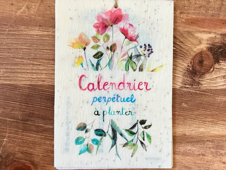 Avec votre calendrier rempli de graines, une fois le mois terminé, ne jetez pas la page à la poubelle mais plantez là ! De jolies fleurs des champs, des coquelicots, des carottes, des myosotis, de la mélisse citronnelle ou même de la salade poussera. Les graines contenues par mois sont à la dernière page du calendrier ensemencé ainsi qu’un petit mode d’emploi.